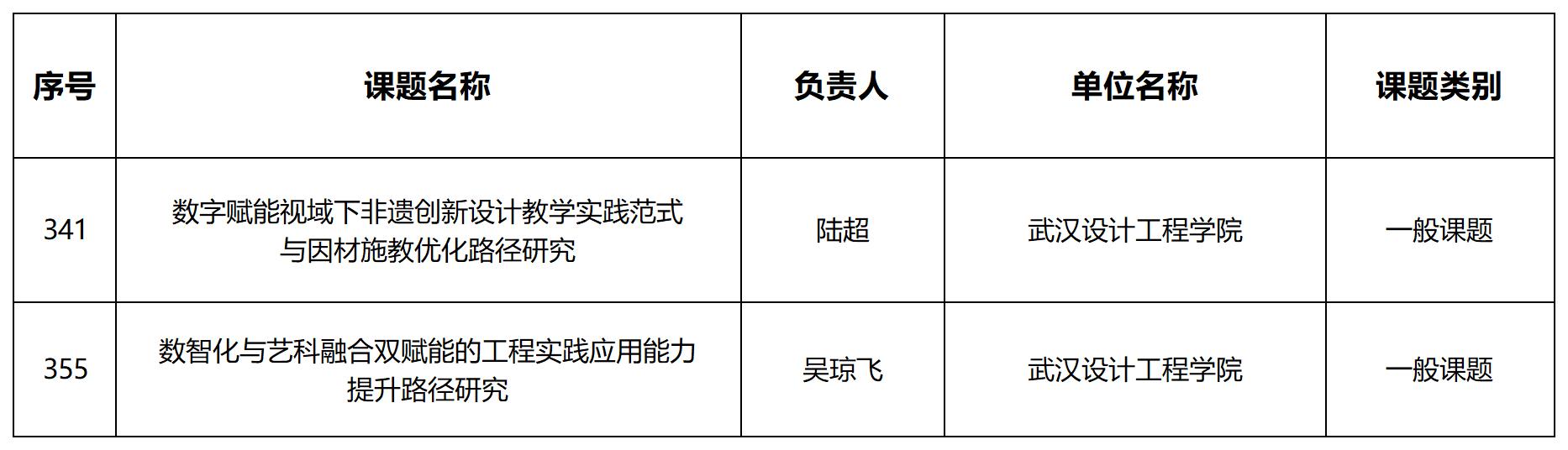 本网讯(通讯员 韩洁)近日,湖北省教育厅办公室公示了2025年度湖北省教育科学规划课题立项名单。我校公共艺术学院陆超老师申报的《数字赋能视域下非遗创新设计教学实践范式与因材施教优化路径研究》与智能工程学院吴琼飞老师主持的《数智化与艺科融合双赋能的工程实践应用能力提升路径研究》两项课题成功获批立项。这一成果不仅彰显了我校教师在教育科研领域的深耕实力,更体现了学校在推动“艺术+科技”学科交叉融合、服务区域教育创新中的积极作为。