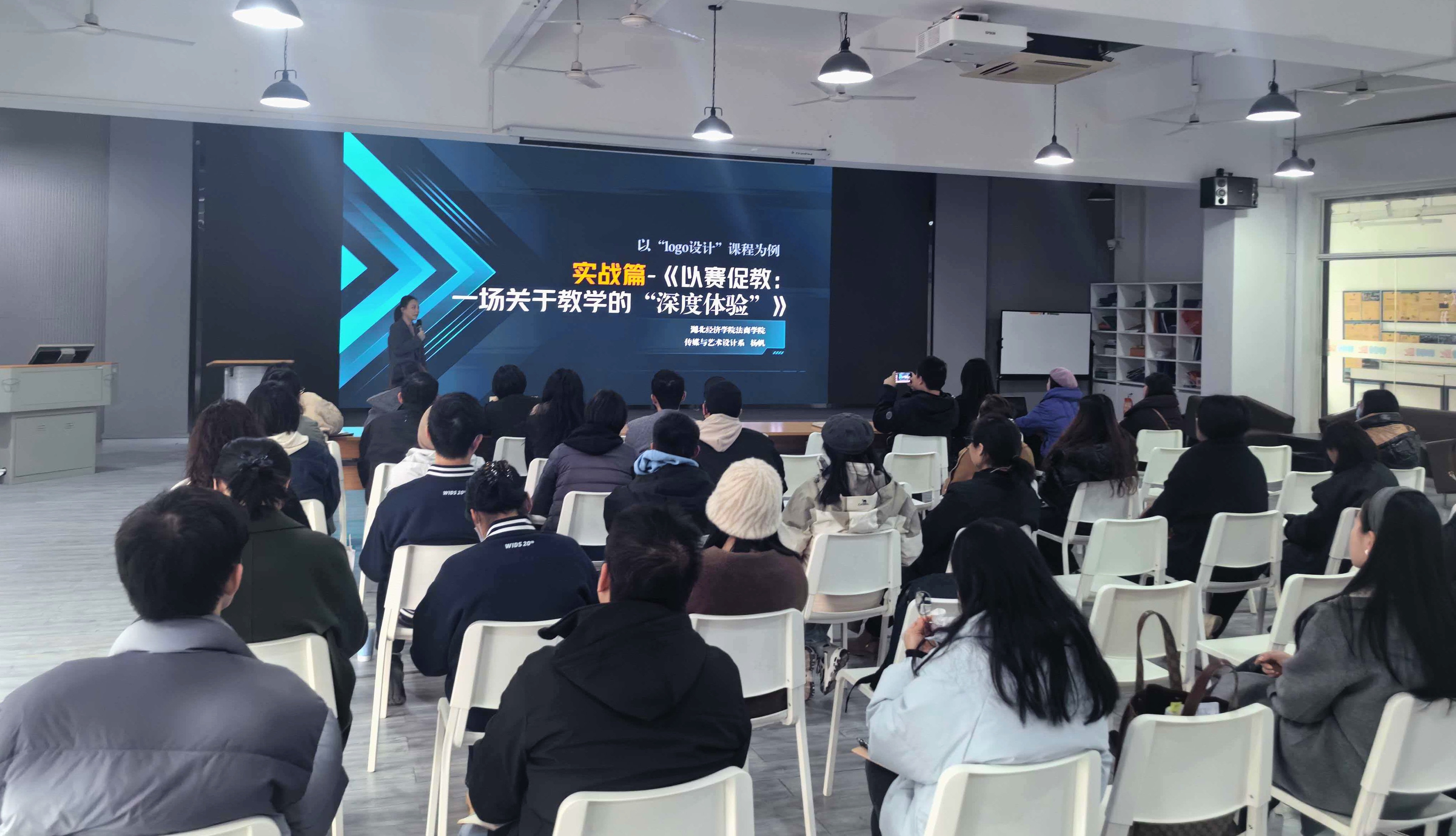 本网讯(通讯员 韩洁)12月15日下午,我校在和光3019教室举办了一场以“以赛促教,一场关于教学的‘深度体验’—以《logo设计》课程为例”为主题的分享会,特邀第五届全国高校教师教学创新大赛湖北省特等奖、国家级三等奖获得者杨帆教授担任主讲嘉宾。分享会由教务处副处长陈晨主持,本次活动吸引了50余位青年教师积极参与。