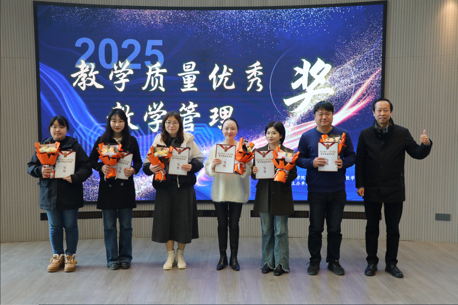 本网讯(通讯员 郑格格)1月9日,我校2025年教学质量优秀奖及教学管理奖评定活动在得一堂一楼报告厅顺利举行。学校党委书记王长华、副校长徐拥华出席活动并为获奖教师颁奖。